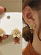 Coffee Flower Drop Earrings in Beige & Brown Color