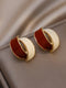 Korean Style Enamel Coated Stud Earrings in Maroon