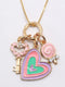 Crystal studded Heart Pendant with delicate Key & Ice Cream Multiple Charm Pendant