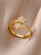 Double Star Design Gold Plated Stainless Steel Zircon Stud Adjustable Finger Ring