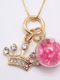 Crystal studded Tiara Pendant with dancing Pink Crystals Pendant (N)
