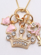 Crystal studded Tiara Pendant with delicate Key & Bow Multiple Charm Pendant